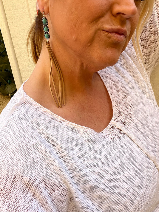 Western Inspired Stone & Suede Tassel Dangling Earrings