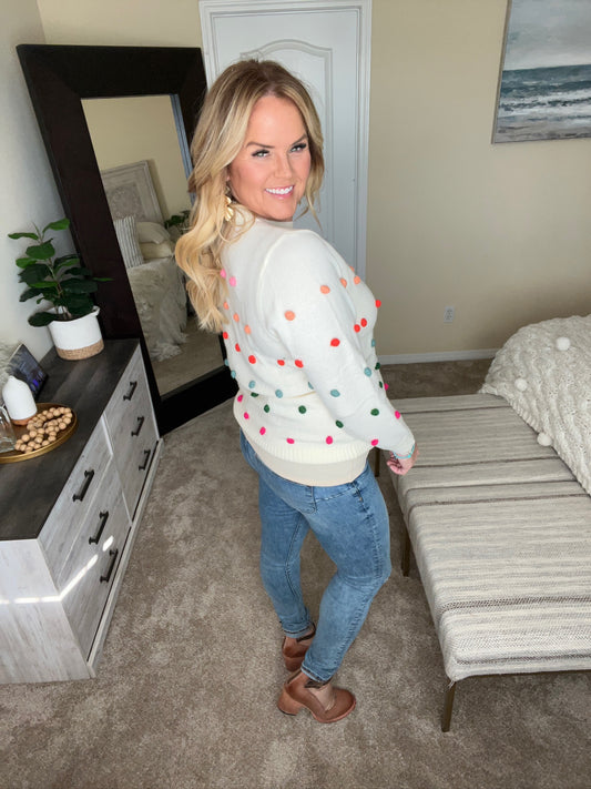 Candy Buttons Pom Detail Sweater