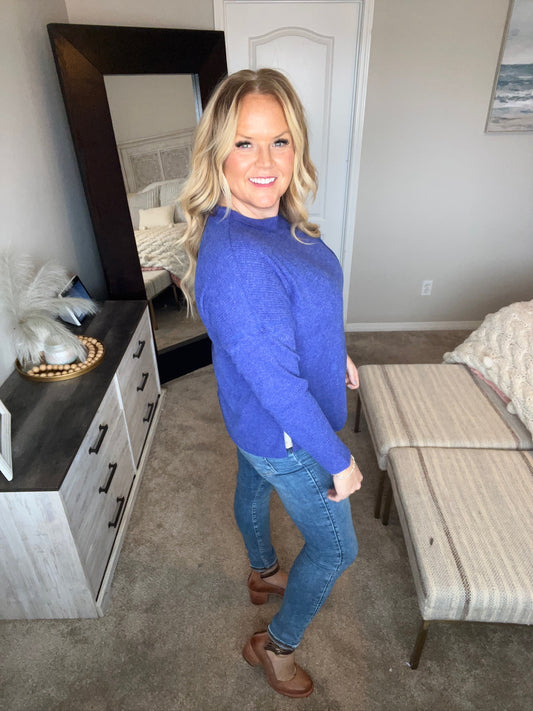 Casual Tuesday Ribbed Knit Sweater in Bright Blue