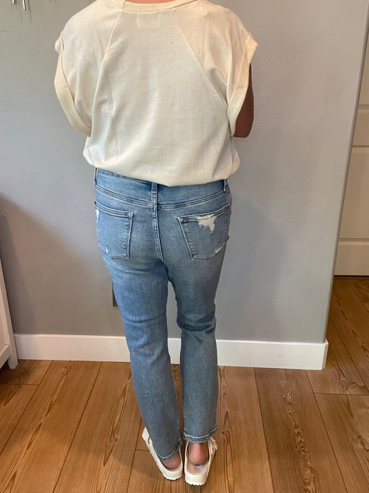 Frankie High Waist Distressed Boyfriend JeansRegular price $74.00 USDRegular priceUnit price per-