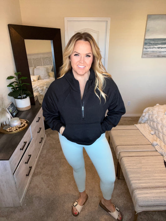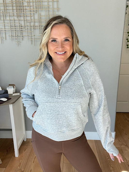 Half Zip Cropped Hoodie in Heather Grey by RM