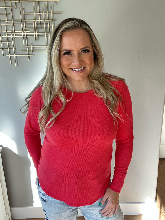 Baby Waffle Long Sleeve Top in Ruby