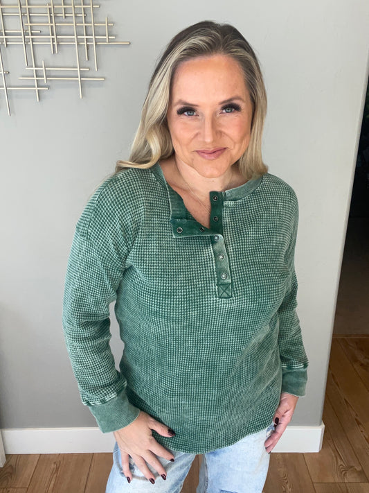Mineral Wash Baby Waffle Henley in Ash Mocha