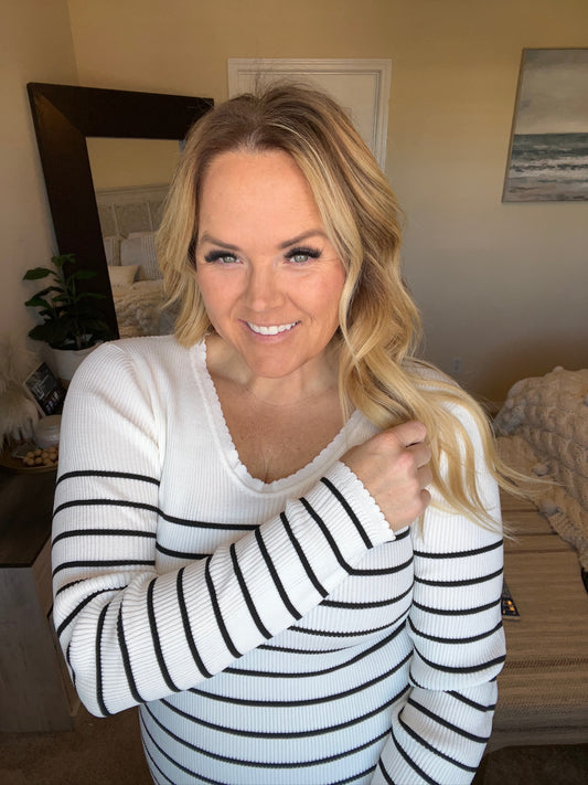 Basics Are Best Long Sleeve V-Neck Top in Bone