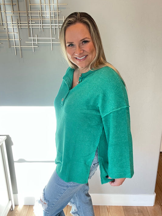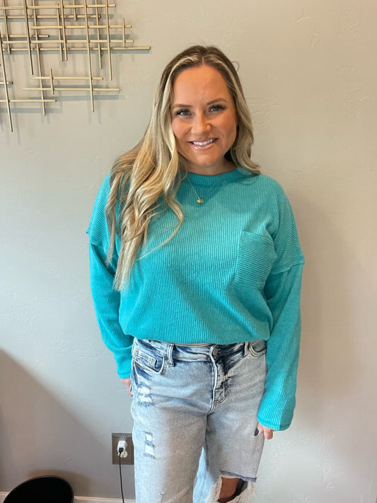 Ribbed Brushed Hacci Sweater in Light Teal by RM
