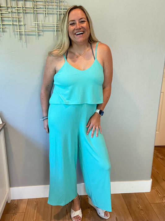 Ribbed Double Layer Jumpsuit in Mint by RM