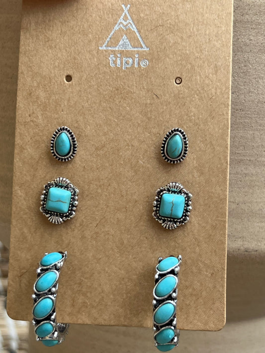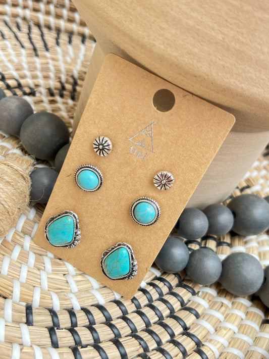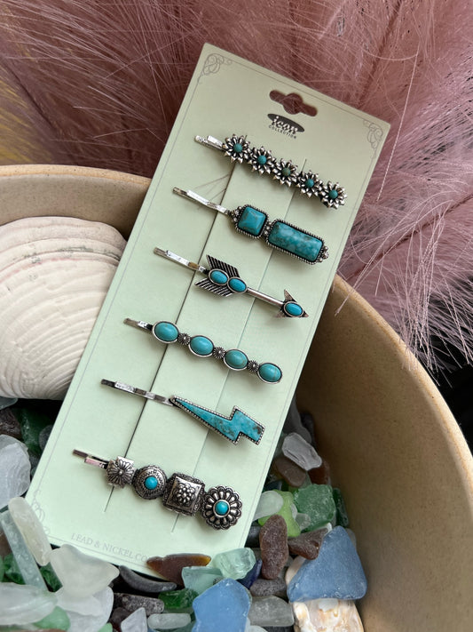 Set of 6 Turquoise Flower Stone Bar Bobby Pins