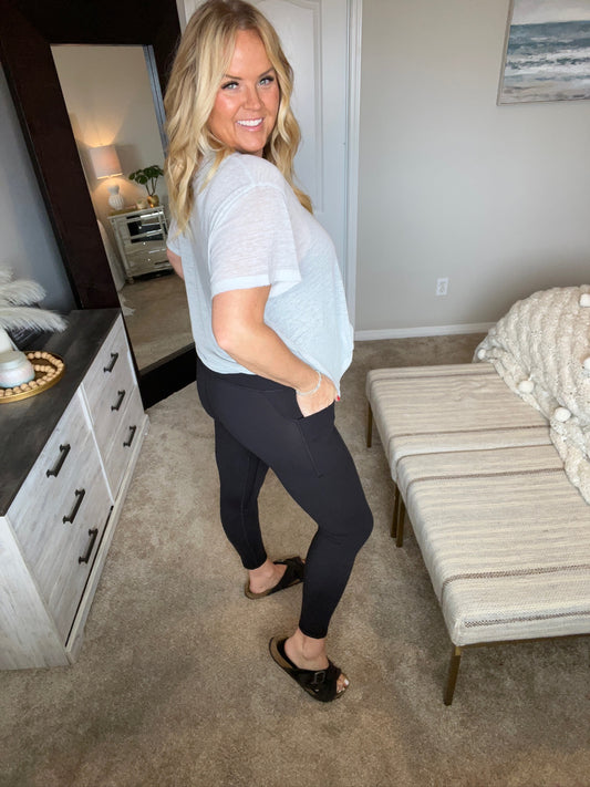 Somewhere to Start Leggings in Dusty Blue