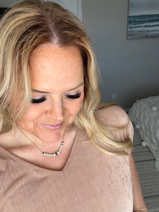 Gold 3 Row Turquoise & Pink Beaded Bracelet