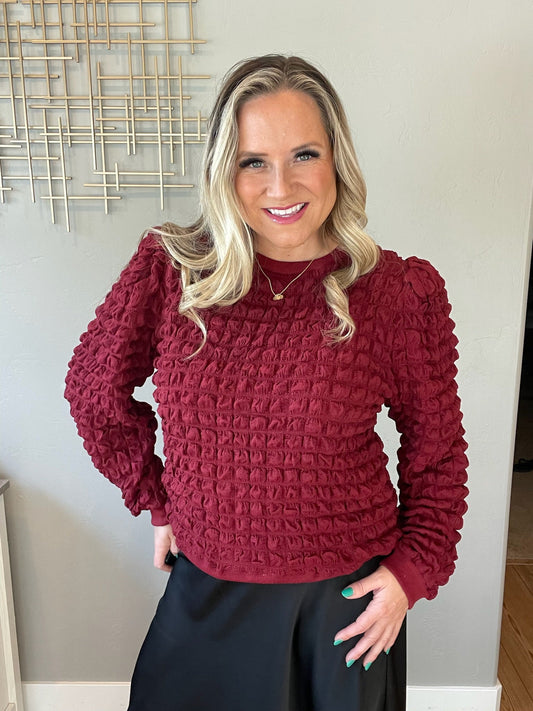 Make No Mistake Mock Neck Pullover in Cranberry by RM