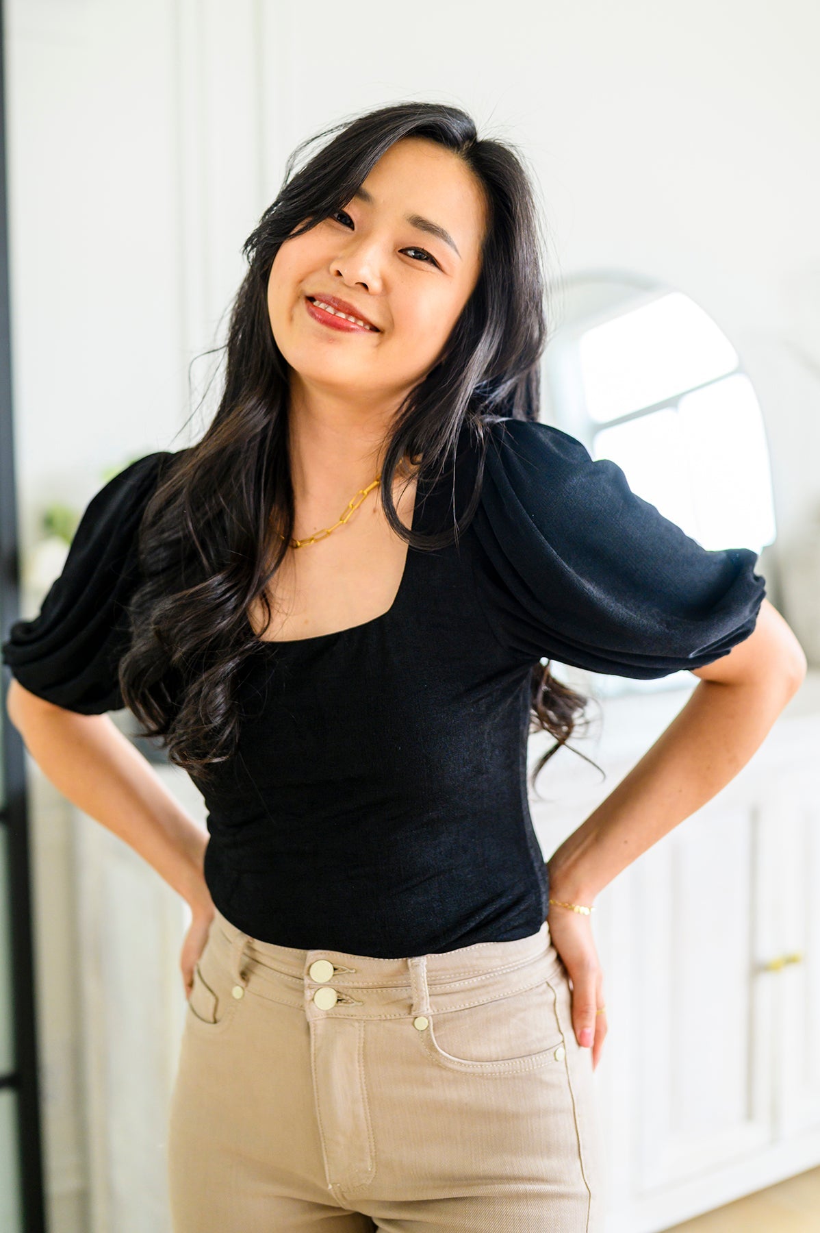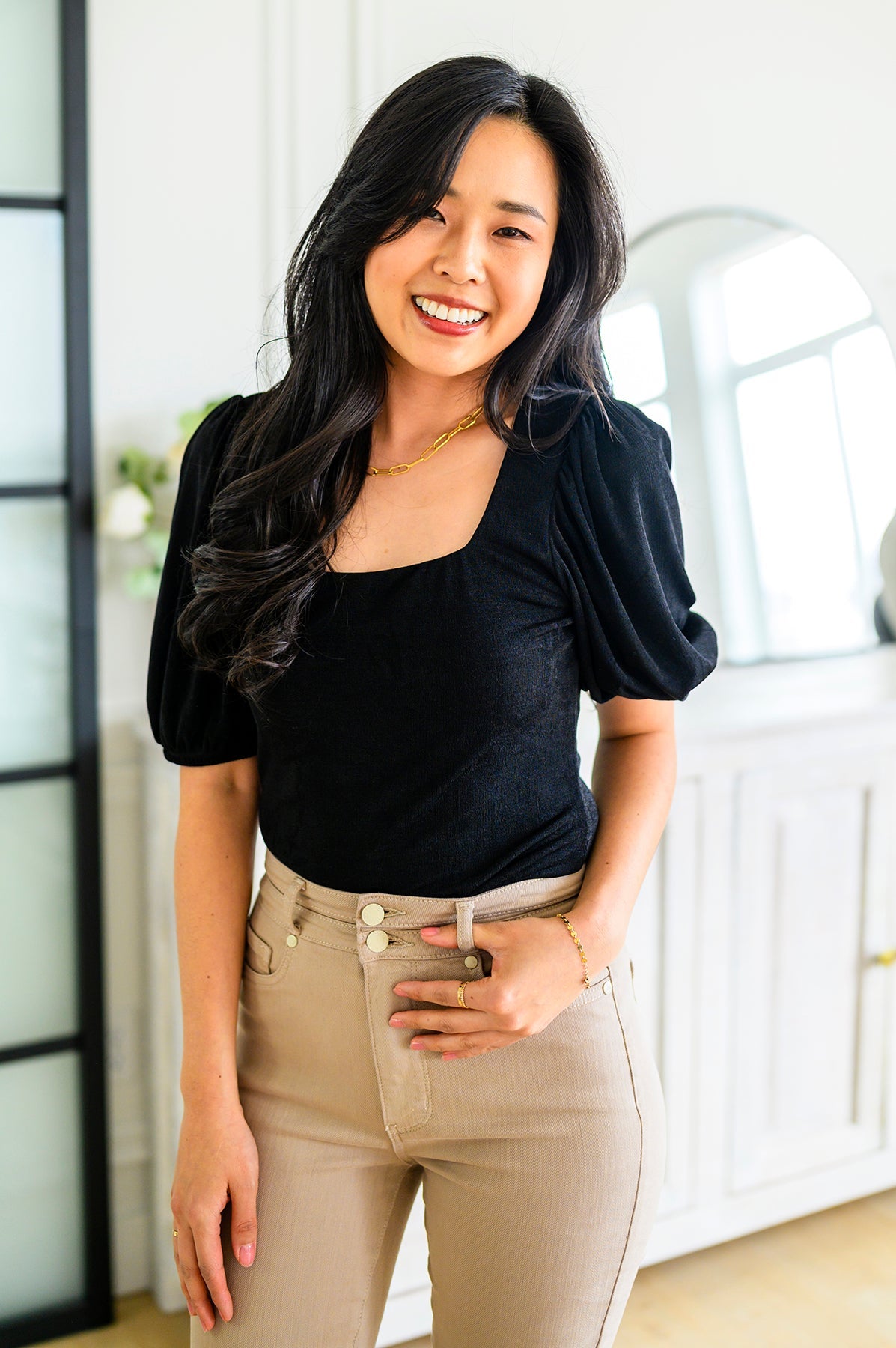 This A Total Vision Square Neck Bodysuit is the perfect elevated base layer to bring your wardrobe to life. Its square neckline and balloon half sleeves provide a casually cool and easy fit, while the lightweight knit keeps you comfortable all day. Make a statement in this stunningly simple must-have!