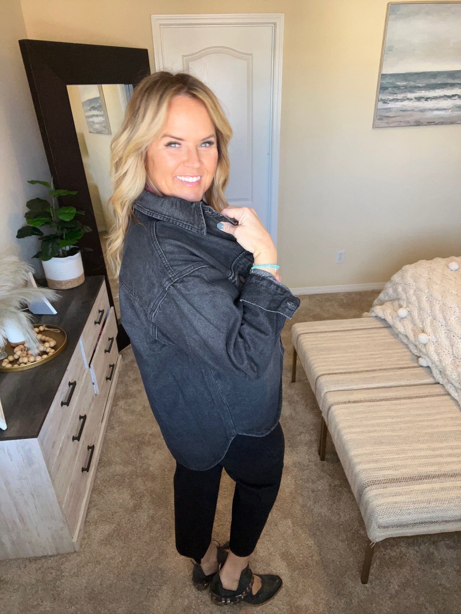 Our By The Fireside Shacket is the perfect layering piece for cool days. Crafted from washed denim with gusseted pockets, its oversized fit and button front put a cozy spin on your favorite jeans-and-tee look.