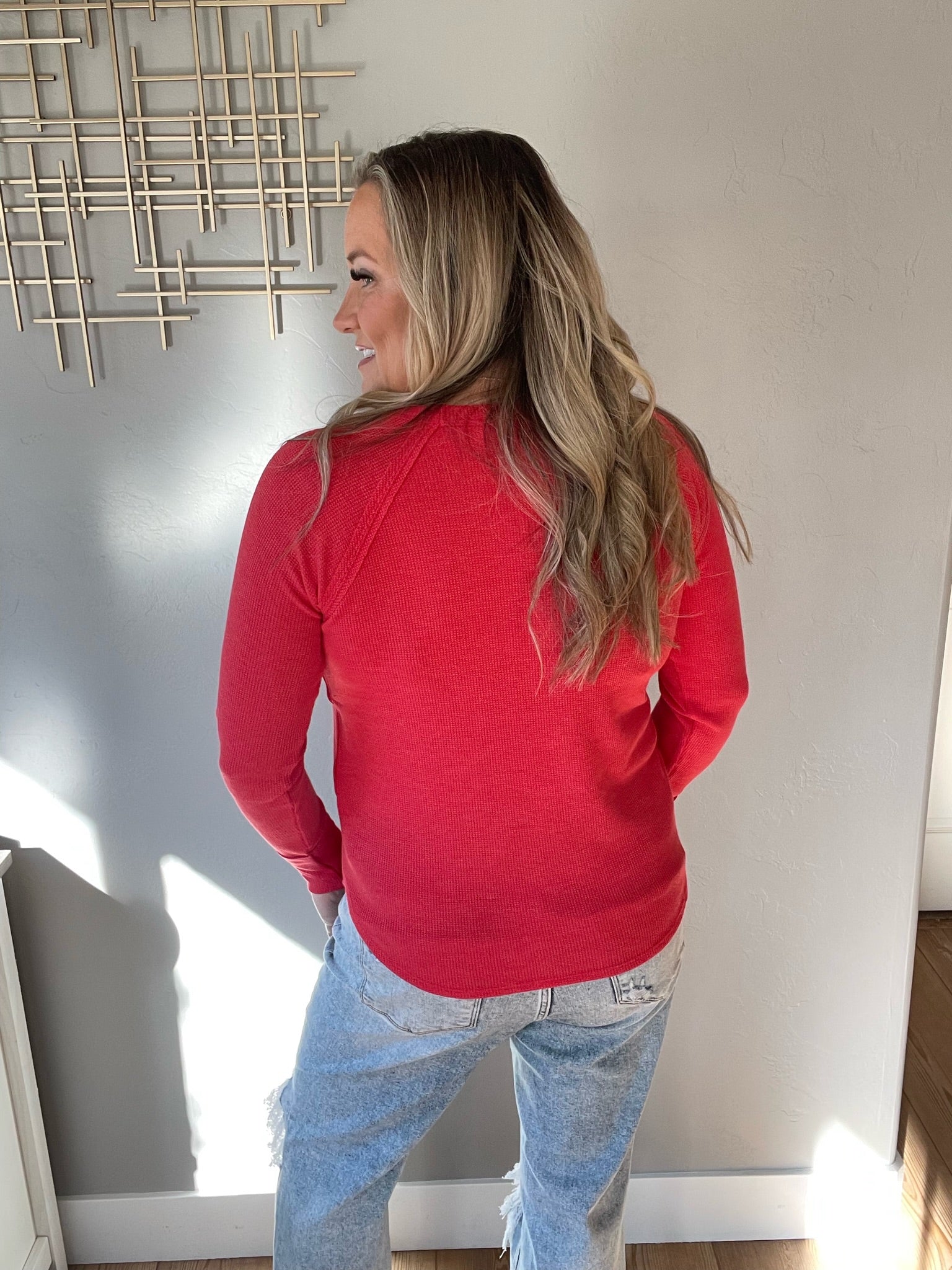 Baby Waffle Long Sleeve Top in Ruby by RM