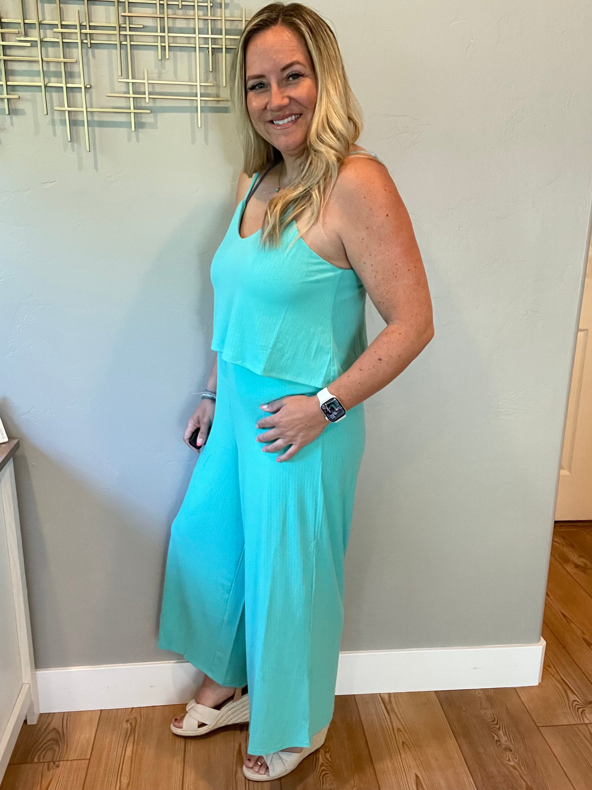 Ribbed Double Layer Jumpsuit in Mint by RM