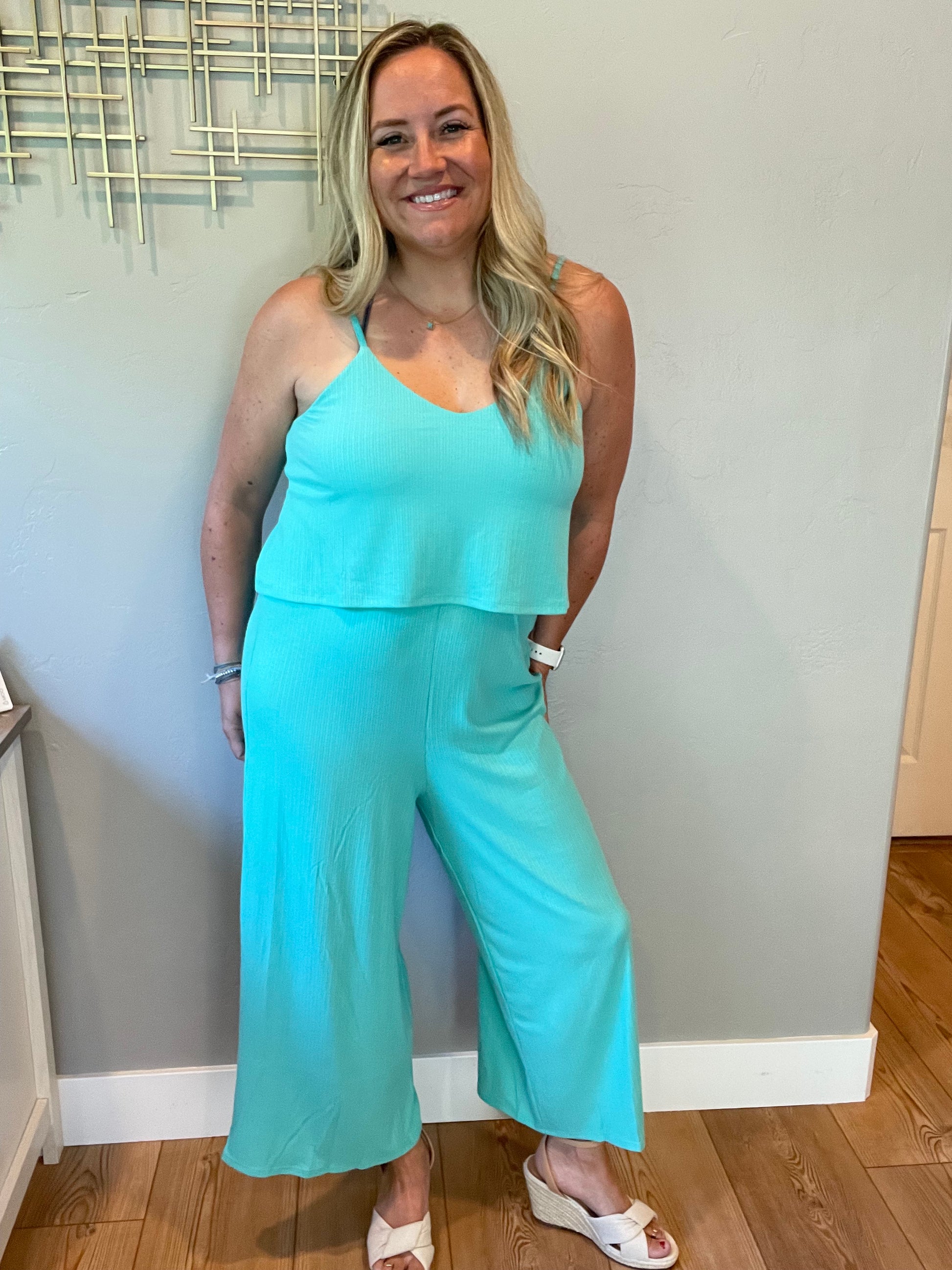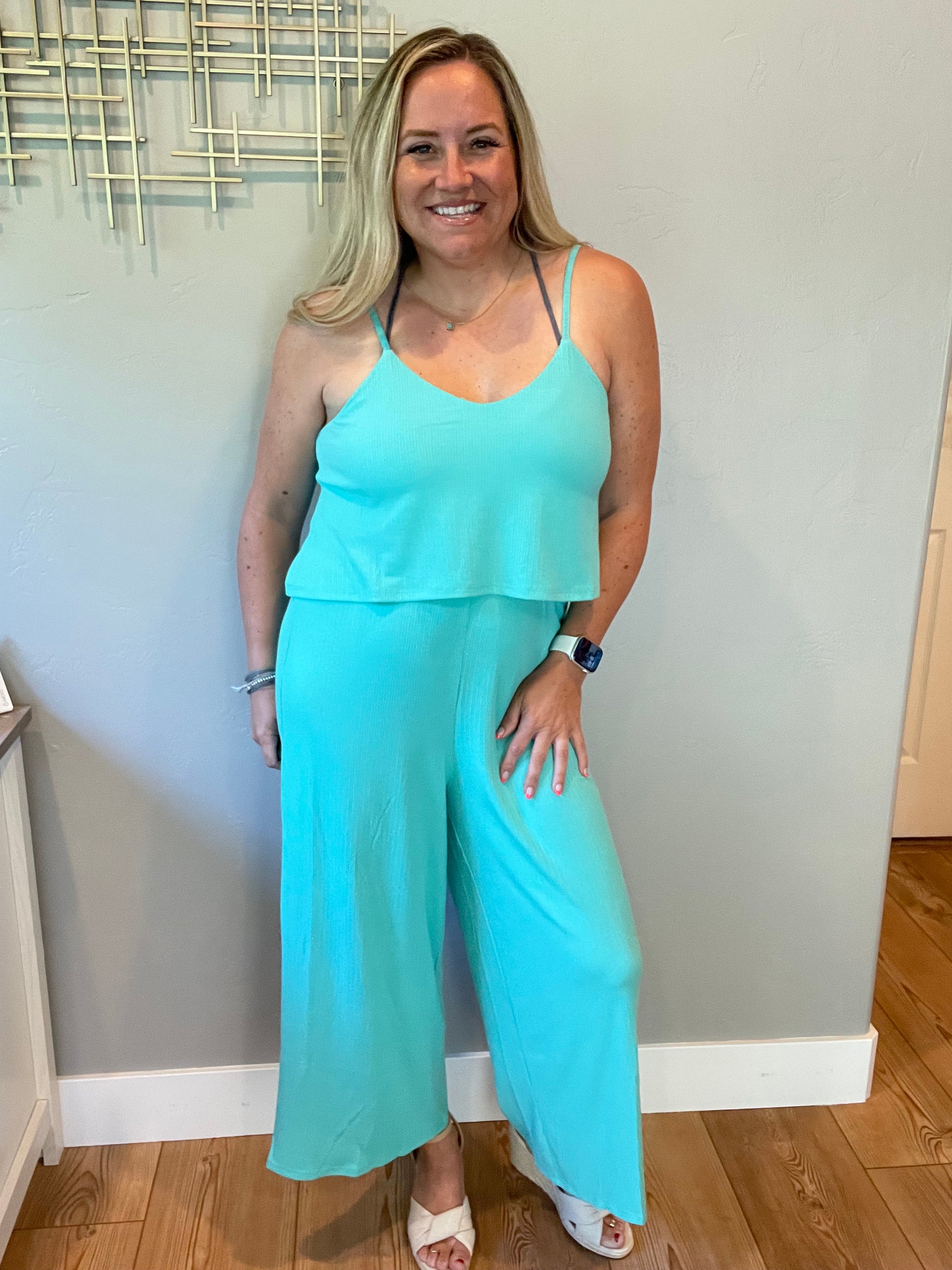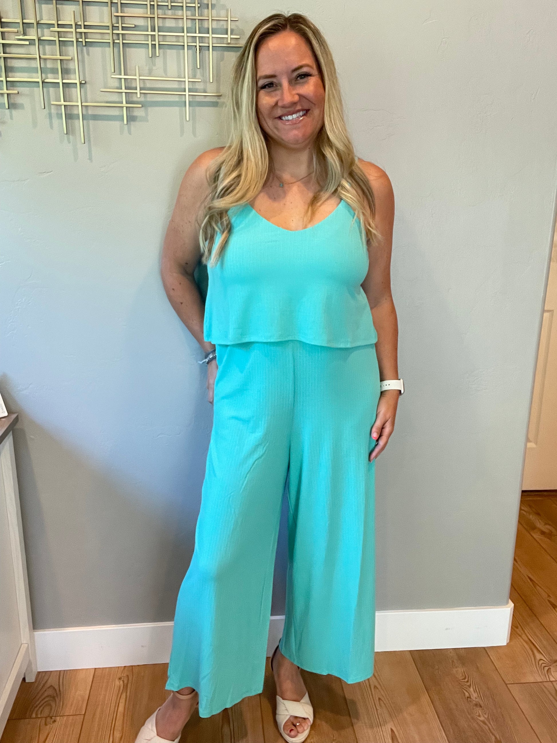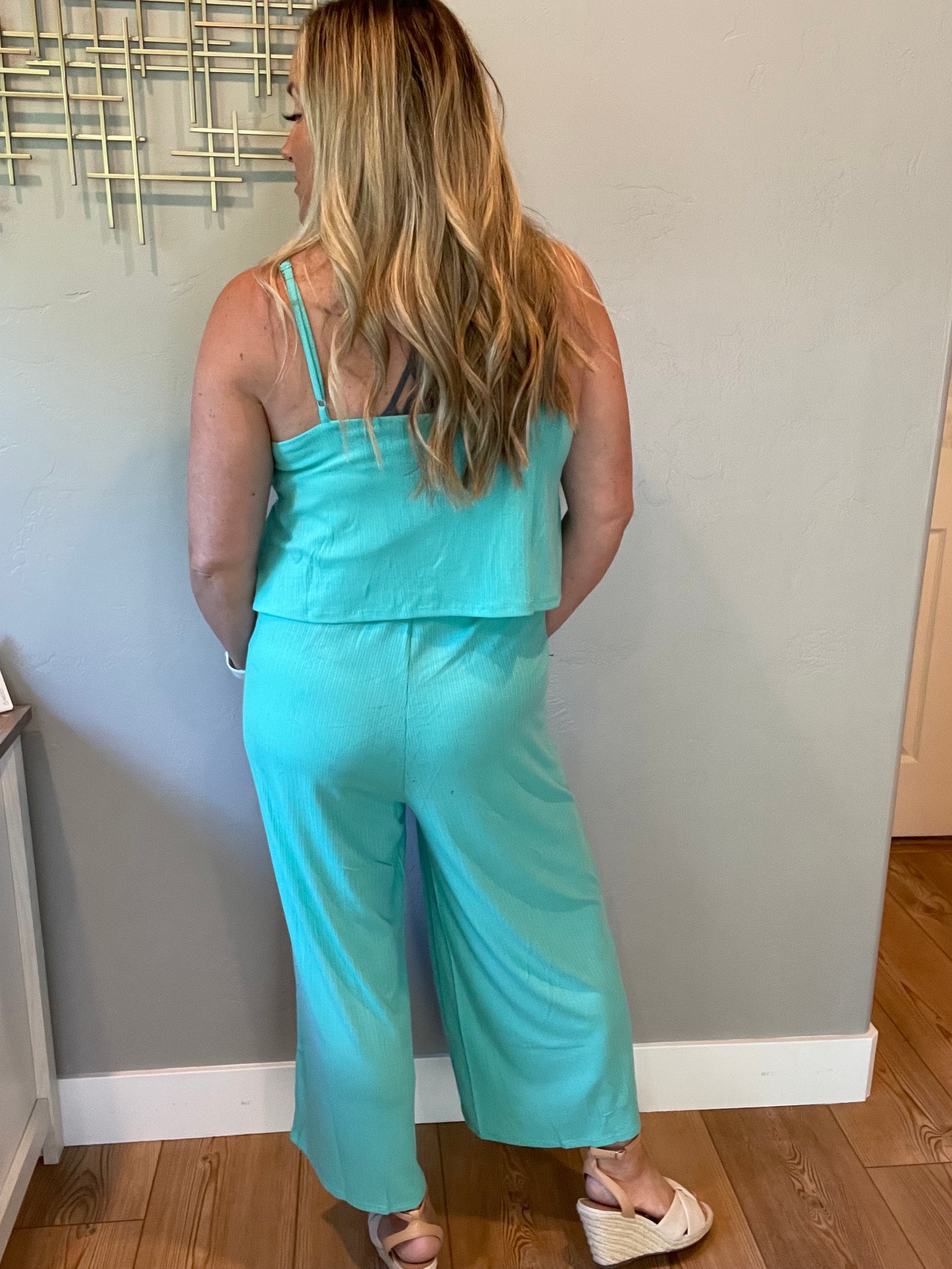 Ribbed Double Layer Jumpsuit in Mint