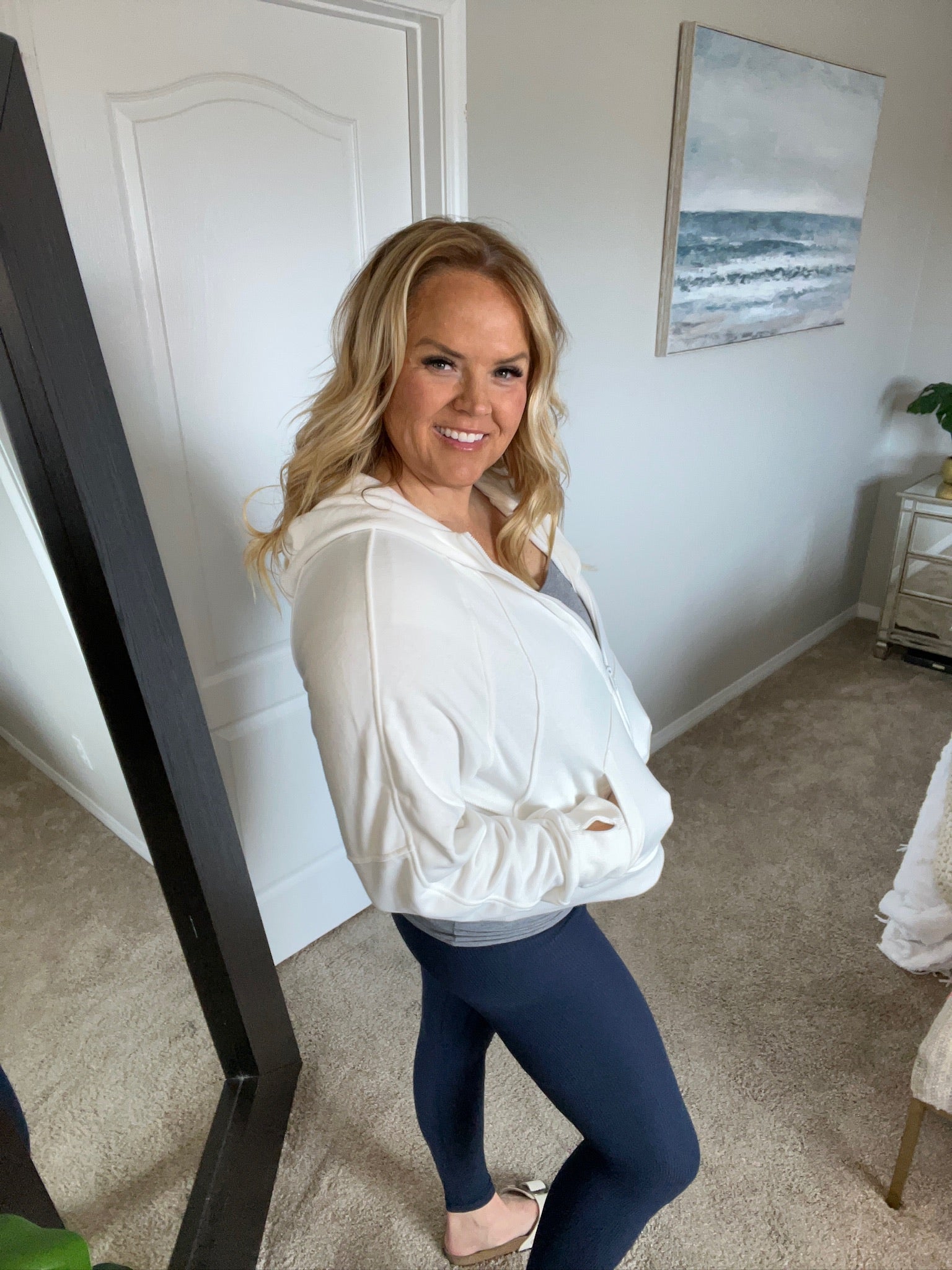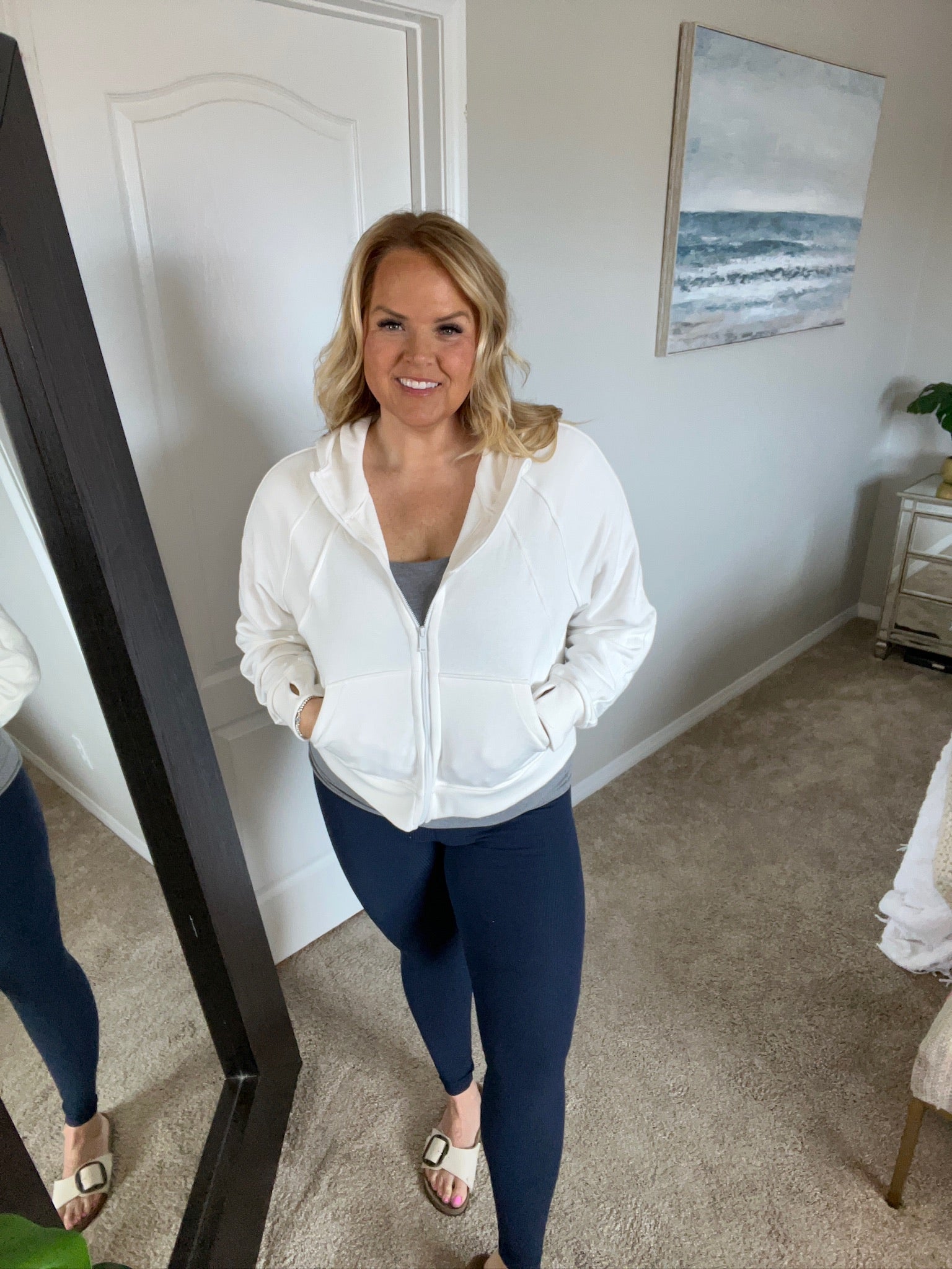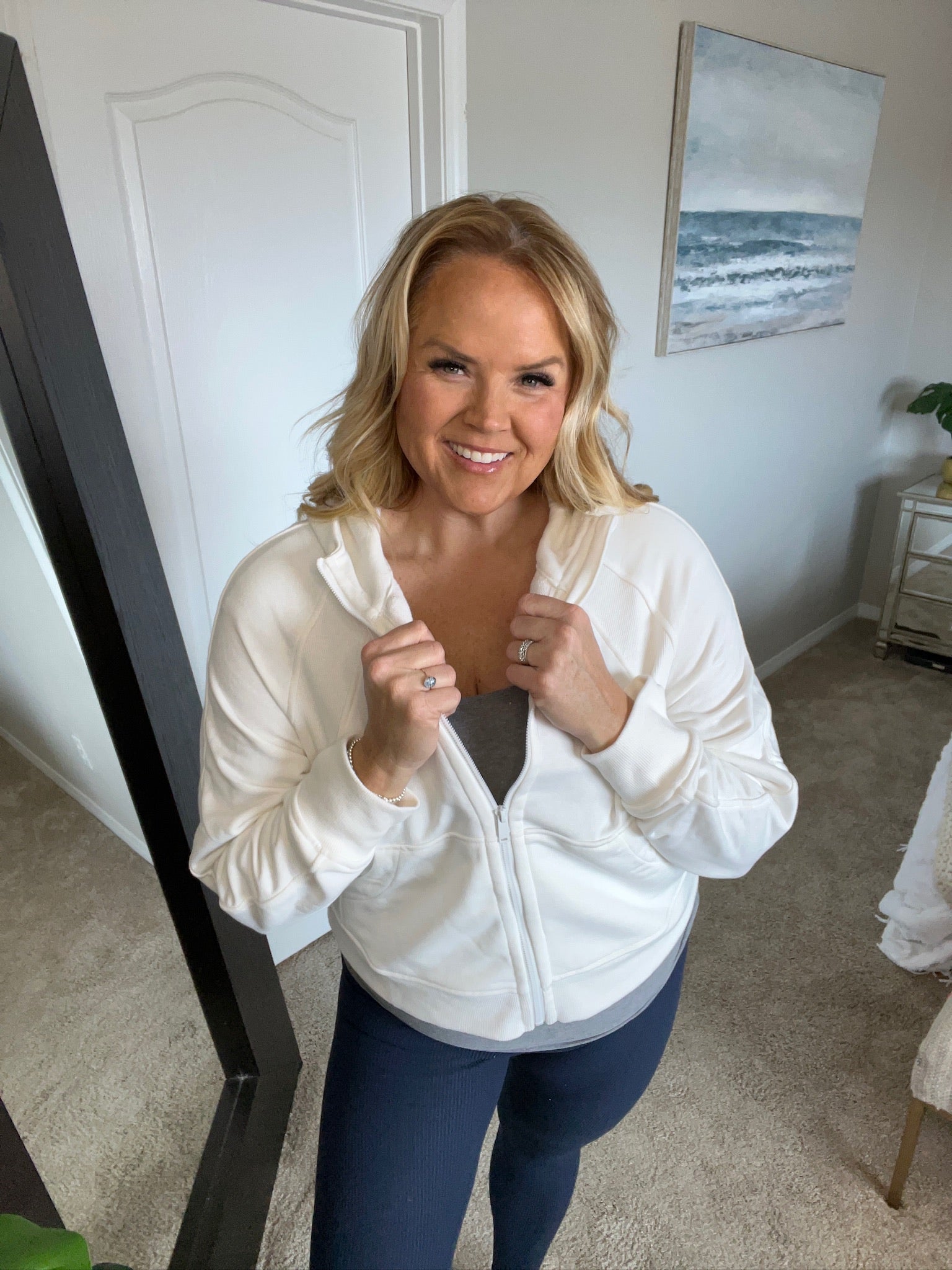 Model Krychele is wearing a size L but would’ve preferred an XL