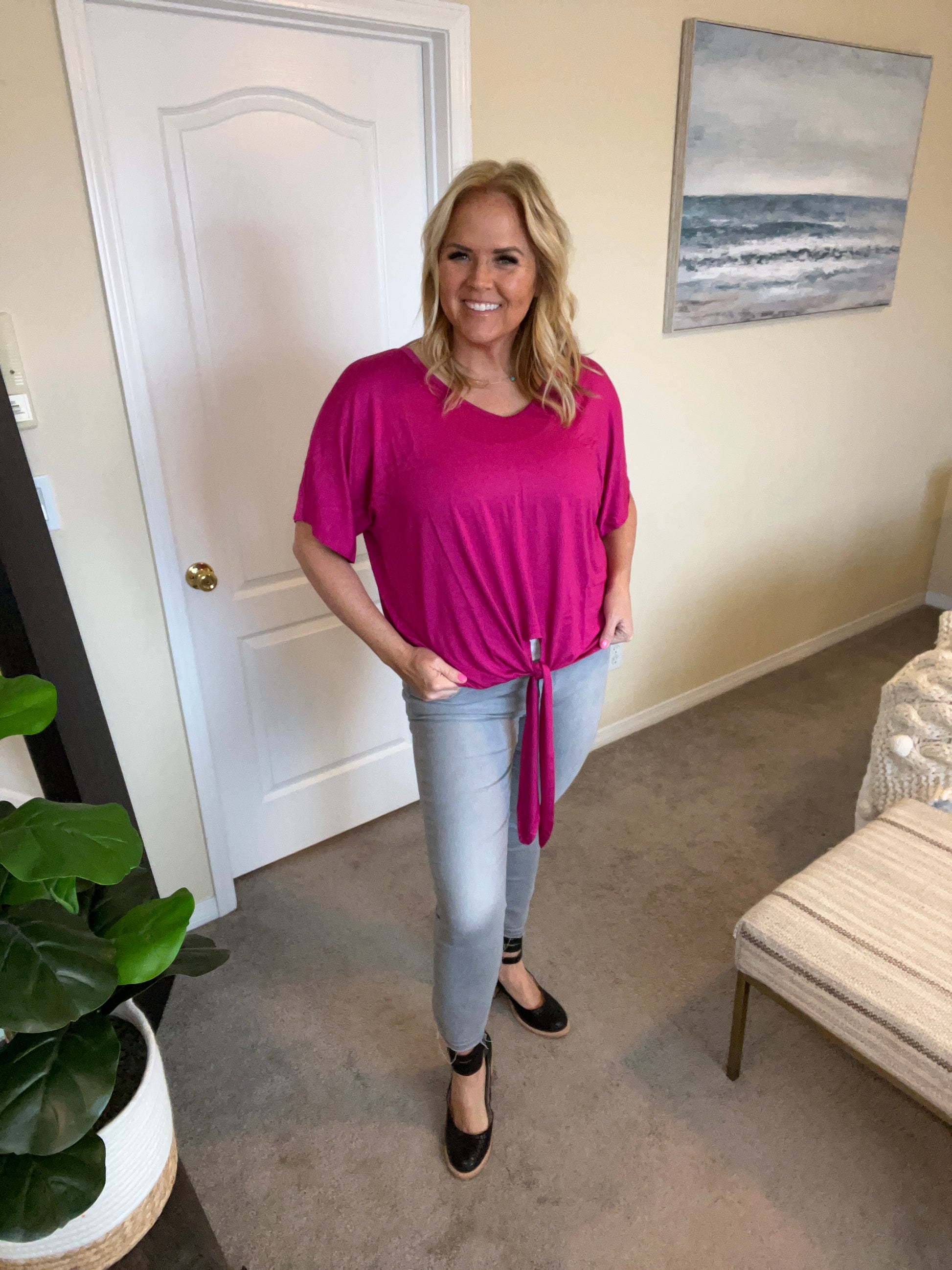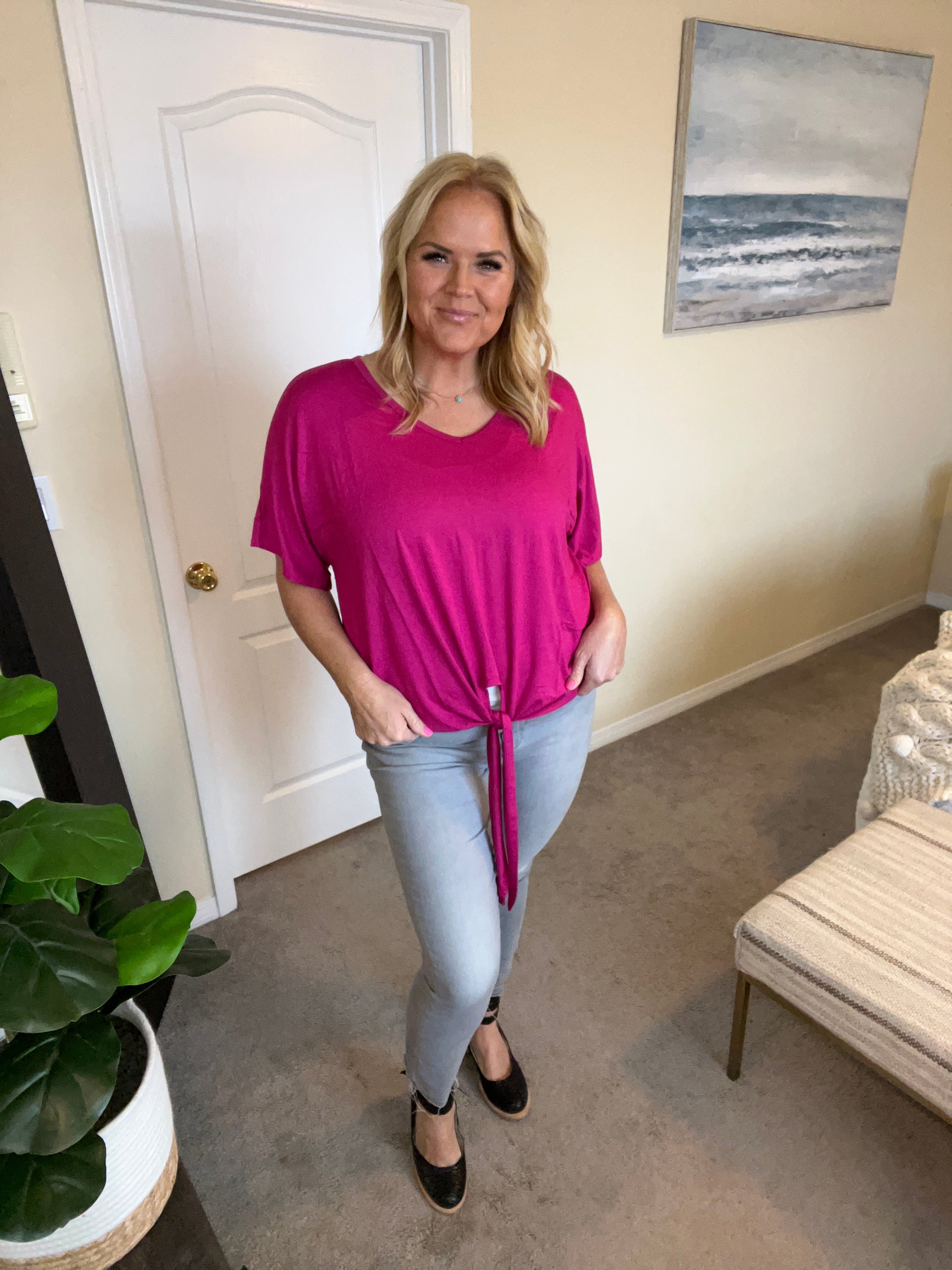 Tied Up With a Bow Top in Magenta